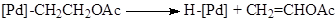 Процесс синтеза винилацетата по реакции (15) протекает в рамках механизма, аналогичного "Вакер"-процессу. Предполагается превращение p-комплекса Pd(II) в s-палладийорганическое соединение под действием OAc– из раствора, а распад полученного интермедиата включает стадию b-элиминирования ~PdH
