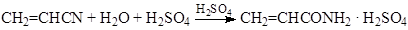 Сернокислотная гидратация нитрила акриловой кислоты (НАК) по реакции (5) осуществляется в концентрированном растворе кислоты в условиях, когда продукт гидратации – акриламид(АА) – образуется в форме сульфата акриламида