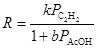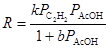 На более активном катализаторе КО45, полученном в МИТХТ им. М.В. Ломоносова в режиме интенсивной циркуляции раствора ацетата цинка через слой активированного угля, скорость реакции описывается более общим уравнением (16), отражающим наличие максимума на кривой R = j(PAcOH).