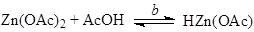 В случае механизма (b) вся поверхность активного Zn(ОАс)2 принимается покрытой уксусной кислотой (ZºНZn(ОАс)3), а торможение процесса АсОН связывают со стадией образования Н2Zn(ОАс)4.