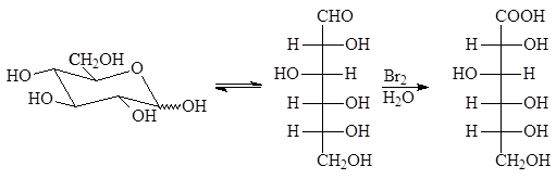 При окислении альдоз такими слабыми окислителями как бромная вода, окислению подвергается только альдегидная группа и образуются альдоновые кислоты.