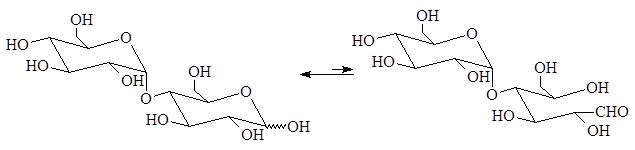 Сахара, дающие положительную реакцию на эти реактивы, называют восстанавливающими сахарами, а не дающие – невосстанавливающими. Мальтоза, целлобиоза и лактоза дают положительную реакцию на эти реактивы, а сахароза - не дает.