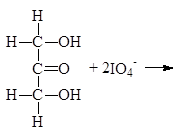 Периодатное окисление глицеринового альдегида приводит к образованию двух мольэквивалентов муравьиной кислоты и одного формальдегида, а его изомера дигидроксиацетона - двух мольэквивалентов формальдегида и одного диоксида углерода.