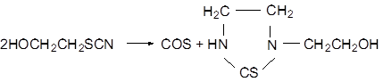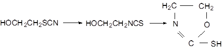 Попытки получения β-роданэтанола взаимодействием этиленхлоргидрина с солями роданистоводородной кислоты в обычных условиях замены галоида на родан окончилась неудачно. Конечным продуктом реакции этиленхлоргидрина с роданистым калием или аммонием являются гетероциклические соединения, образовавшиеся, по-видимому, в результате превращения нестойкого роданэтанола: