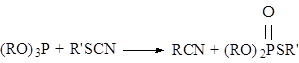 При взаимодействии алкилроданидов с диалкил- и триалкилфосфитами с хорошим выходами получаются эфиры тиофосфорной кислоты:
