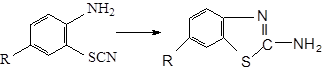 Большой интерес представляют реакции роданадов, сопровождающиеся образованием гетероциклическихсоединений. Наиболее типичным случаем такой реакции является образование бензаминотиазолов из ортоамнороданидов: