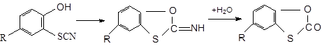 Роданфенолы при изомеризации также способны давать циклические соединения, которые при действии воды отщепляют аммиак и образуют циклические эфиры тиоугольной кислоты: