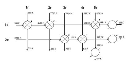Задача синтеза систем теплообмена формулируется следующим образом. Пусть имеется m горячих и n холодных потоков, которые мы будем называть основными технологическими потоками. для каждого из этих потоков заданы начальные температуры
