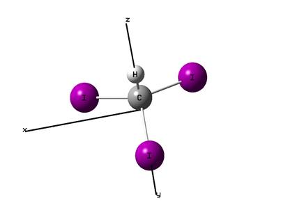 Рис. 1.1. Структура и пространственная ориентация молекулы йодоформа.