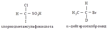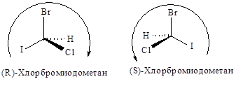 Например, в случае СНСlВгI с асимметрическим атомом углерода связаны четыре различных атома, и старшинство их зависит только от атомного номера, причем, чем больше атомный номер, тем старше заместитель. Таким образом, в порядке уменьшения их старшинства атомы располагаются в следующем порядке: I > Вг > С1 > Н.