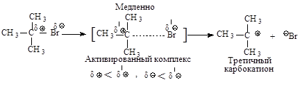 Третичные галогеналканы реагируют по мономолекулярному механизму.