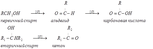 Образование разных продуктов в реакциях дегидрогенизации и окисления является важнейшим свойством, позволяющим отличить первичные, вторичные и третичные спирты.