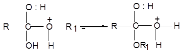 2) Катион взаимодействует с молекулой спирта по не поделенной электронной паре атома кислорода, образуя оксониевый ион: