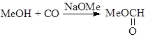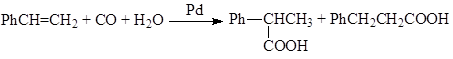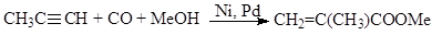 Процесс синтеза метилметакрилата (ММА) (8) считается в настоящее время наиболее экономически и экологически эффективным (по сравнению с ацетонциангидринным методом и окислением изобутена). Процесс разработан фирмой Shell и протекает при давлении 40 – 60 атм и температуре 110оС с очень большой скоростью (50000 моль/(моль·час)) и высокой селективностью (~100%) в растворах комплексов PdL2X2, где L – 2-PyPPh2, X – CH3SO3–, CF3SO3–, тозилат). Механизм процесса пока не ясен.