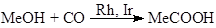 В процессе фирмы “Monsanto” активным катализатором является комплекс Rh(CO)2I2–, а в процессе фирмы “Cativa” – Ir(CO)2I2–. Основные стадии процесса в случае комплексов родия:
