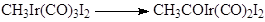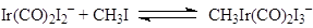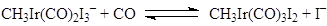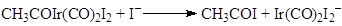 Усовершенствование процесса при переходе к комплексам Ir (“Cativa”-процесс, BP и “Monsanto”) связано с тем, что аналогичный Rh(I) комплекс Ir [Ir(CO)2I2–] более устойчив в широком диапазоне РСО и [Н2О]. Так, комплекс устойчив при ~0.5% концентрации Н2О в отличие от комплекса Rh (> 8% H2O). Показано, что скорость присоединения CH3I к Ir(I) ~ в 150 раз выше, чем в случае Rh(I) (стадия 18), и не лимитирует процесс. Медленной стадией в этой системе считают реакцию (26) внедрения СО в метильном комплексе Ir(III), следующую за стадией замещения I– (25)