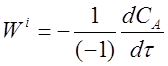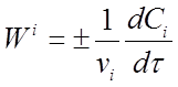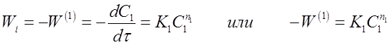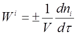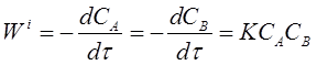 Скоростью образования (расходования) количества данного i-того вещества (компонента) во время химической реакции или скоростью реакции Wi по данному i-тому веществу называется изменение количества этого вещества ni (в молях) в единицу времени т в единице реакционного пространства R :