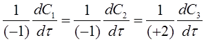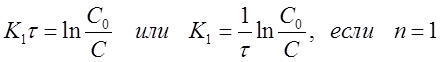 Проинтегрируем уравнение (29) в пределах от 0 до τи от С0 до С при п = 1, 2, 3, при этом получим: