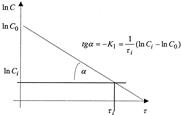 прямую линию. Тангенс угла наклона этой линии, построенной по экспериментальным данным, равен константе скорости изучаемой реакции (рисунок 3).