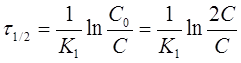 где ( τ2 - τ1 ) - интервал времени, за который в течение реакции концентрация вещества изменяется от С1 до C 2 .