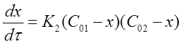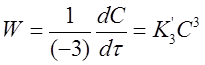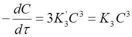 Если для реакции третьего порядка использовать величину х, то уравнение для скорости реакции приобретет вид: