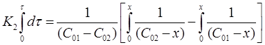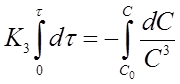 Разделим переменные в уравнении (20) и проинтегрируем его в пределах от 0 до τ и от С0 до С