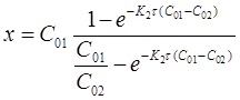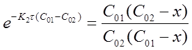 В способе подстановки для реакций 2го порядка, когда концентрации исходных веществ неравны можно использовать формулу (16).