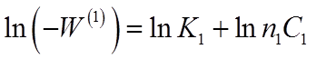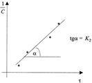 опытные точки для разных моментов времени, в случае справедливости уравнения (28) должны расположиться на прямой линии (рисунок 6). Отрезок на оси ординат дает значение ln
