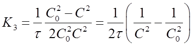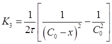Константу скорости К3 определяют экспериментально. При этом используют уравнение (21) в виде: