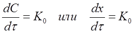 Размерность константы скорости реакции нулевого порядка К0 , [время-1 конц.].
