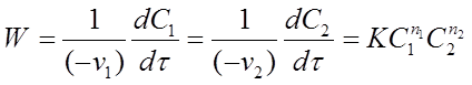 где W - скорость реакции, одинаковая для всех веществ, участвующих в данной реакции;