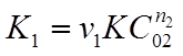 По уравнению (25) находят К1 , п1 или К2 , п2 по уравнению (26).