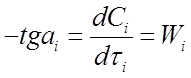 Ci - τi (рисунок 5). Скорость реакции в заданные моментывремени τi находят проведением касательных к экспериментальной кривойпо величине тангенса угла наклона этих касательных ( графическимдифференцированием):