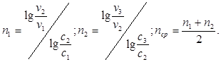 По данным измерений можно определить порядок реакции n по скоростям, соответствующим двум различным концентрациям (метод Вант-Гоффа).