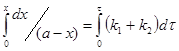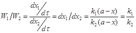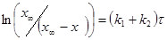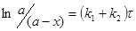 Экспериментально определяя х для какого-то τ по уравнению (5), вычисляем сумму констант скоростей