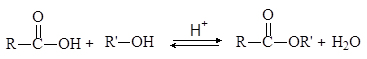 Карбоновые кислоты реагируют со спиртами с образованием сложных эфиров (эстеров) по реакции конденсации получившей название этерифиация .