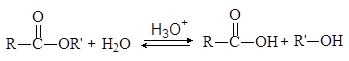 Гидролиз эфиров представляет собой реакцию обратную этерификации и катализируется кислотами: