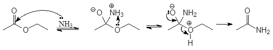 Упр.39. Напишите реакции этиловых эфиров кислот: (а) уксусной, (б) пропионовой, (в) масляной и (г) бензойной с аммиаком и опишите их механизм.