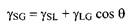 Свободная поверхностная энергия твердого тела Ylgспособствует растеканию капли по поверхности, т. е. сдвигу точки трехфазного контакта. Отсюда ясно, что растеканию капли соответствует высокая энергия поверхностей. Межфазное натяжение Ysl, а также горизонтальная компонента поверхностного натяжения Ylgжидкости действуют в противоположном направлении. При равновесии результирующая сила равна нулю: