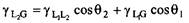 Межфазная граница между двумя жидкостями может быть плоской, если одна из жидкостей, например L2, имеет высокую вязкость. Тогда cosбудет равен 1, и уравнение становится идентичным уравнению Юнга. Полезной величиной является коэффициент растекания 5, определяемый как