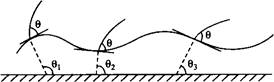 Рис. 15. На шероховатой поверхности можно измерить различные значения краевого угла
