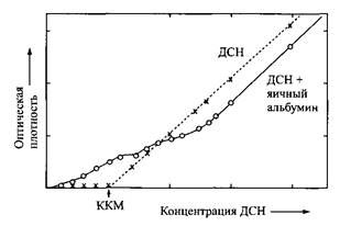 Критическая концентрация связывания соответствует точке достижения произведения растворимости. Так как в состав комплекса входит много молекул ПАВ, критическая концентрация ПАВ слабо зависит от концентрации белка и связывание становится в значительной степени кооперативным.