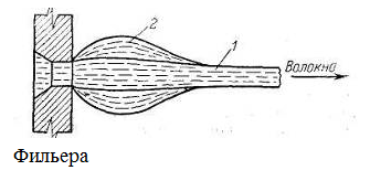 Во время протекания прядильного раствора по капиллярам фильеры происходит значительное изменение структуры растворенного полимера, что отражается в первую очередь на реологических свойствах раствора. Кроме свойств ПАН и растворителя решающую роль в изменении структуры полимера в капилляре играют условия протекания раствора: размеры капилляра, скорость продавливания раствора, продолжительность нахождения раствора в капилляре и, конечно, температурные условия. Кроме того, значительное влияние оказывают также условия на входе и выходе раствора из капилляра. Выявить степень влияния каждого из параметров процесса течения раствора через капилляр не всегда удается, поэтому некоторые из них рассматриваются в совокупности с другими.