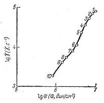 Рис.5. Верхний участок кривой течения 18% раствора полиакрилонитрила (соотношение l/R капилляра = 3,9)