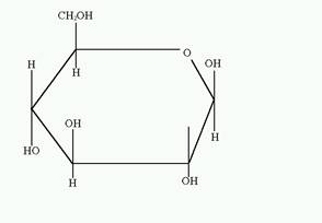 Глюкоза — моносахарид, одна из восьми изомерных альдогексоз. Молярная масса 180 г/моль. Глюкоза в виде D-формы (декстоза, виноградный сахар) является самым распространённым углеводом. D-глюкоза (обычно её называют просто глюкозой) встречается в свободном виде и в виде олигосахаридов (тростниковый сахар, молочный сахар), полисахаридов (крахмал, гликоген, целлюлоза, декстран), гликозидов и других производных. В свободном виде D-глюкоза содержится в плодах, цветах и других органах растений, а также в животных тканях (в крови, мозгу и др.). D-глюкоза является важнейшим источником энергии в организмах животных и микроорганизмов. Как и другие моносахариды D-глюкоза образует несколько форм. Кристаллическая D-глюкоза получена в 2-х формах: a -D-глюкоза (рисунок 1) и b -D-глюкоза (рисунок 2).