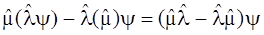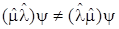 Две эти разные последовательности измерений двух величин порождают два конечных результата B и D. В общем случае они могут не совпадать, но не исключён и нулевой результат. Составим их разность, и соберём все операторы слева от символа преобразуемой волновой функции, используя свойство ассоциативности эрмитовых операторов: