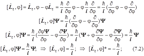 7.3.5. Второй коммутатор построим аналогично из оператора момента импульса и ему соответствующей координаты - угла поворота плоского ротатора: