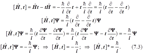 7.3.6. Также и третий коммутатор построим из оператора энергии и времени. Зависящий от времени гамильтониан заимствуем из временного уравнения Шрёдингера: