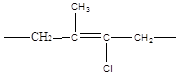 При хлорировании используют смесь хлора с азотом, полученную при объёмном соотношении компонентов 1- (5-10). Хлорирование протекает в основном по типу реакции замещения атома водорода в изопреновых звеньях, при этом сохраняется 75 % ненасыщенности исходного бутилкаучука и образуются звенья следующих типов:
