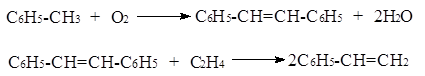 7)Получение стирола метатезисом этилена со стильбеном, полученным окислением толуола: